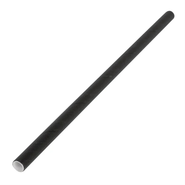Offer your guests a substitute to traditional plastic straws with this pack of 250 x black Fiesta Compostable paper cocktail stirrer straws. These cocktail straws are made from paper and food-grade inks and glues, which means they can be commercially composted within 12 weeks after use. This will help you to divert waste away from harmful landfill sites, instead turning these straws into nutrient-rich compost that's used to grow more plants.