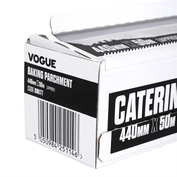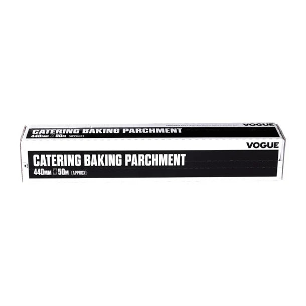 For stick and hassle-free baking, choose this 440(W)mm x 50(L)m roll of Vogue parchment paper. A double-sided silicone coating makes it simple for you to remove your baked goods from the tray without them ripping or breaking. This'll ensure your sweet treats are always presented immaculately!